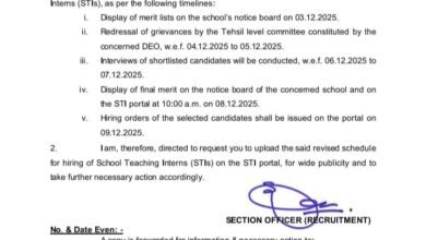Revised Schedule School Teaching Interns (STIs) School Teaching Interns (STIs) The merit list has been displayed in your respective school.…